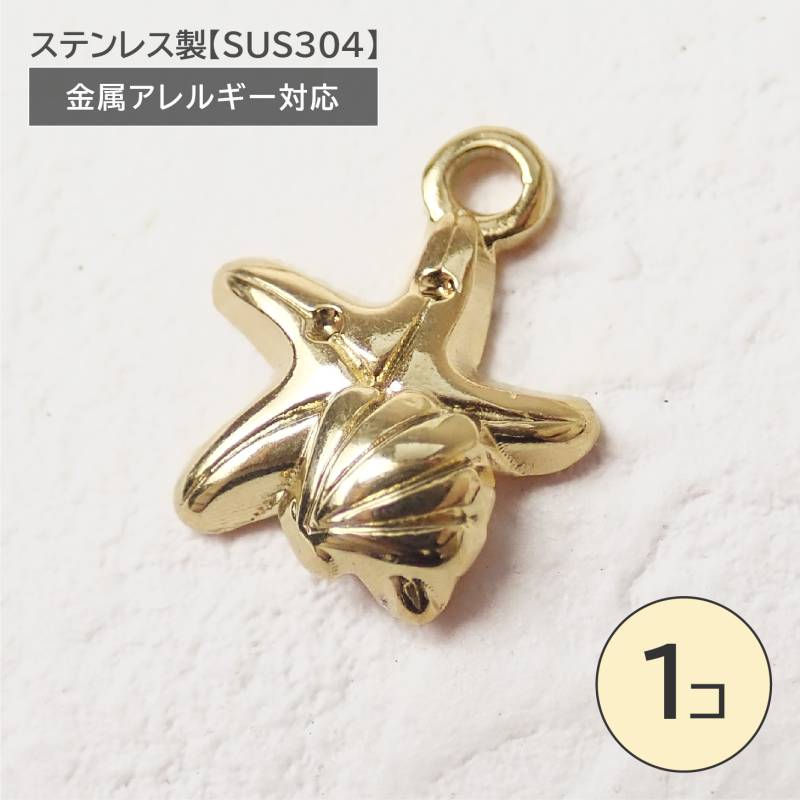 ステンレス製【SUS304】 金属アレルギー対応 ゴールド ヒトデ 貝 チャーム カン付き