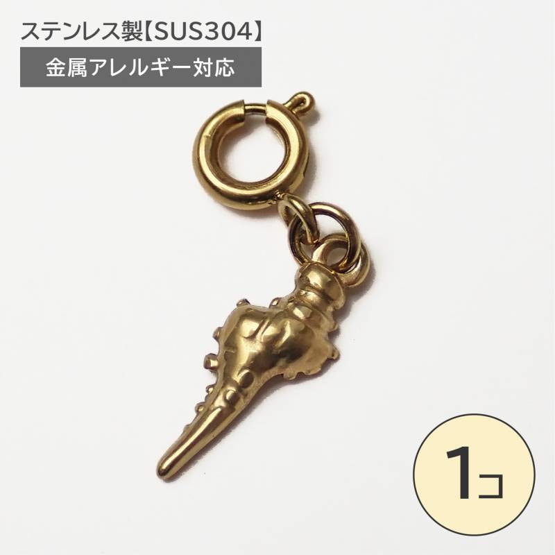 ステンレス製【SUS304】 金属アレルギー対応 ゴールド 貝 海 シェル チャーム 引き輪付き