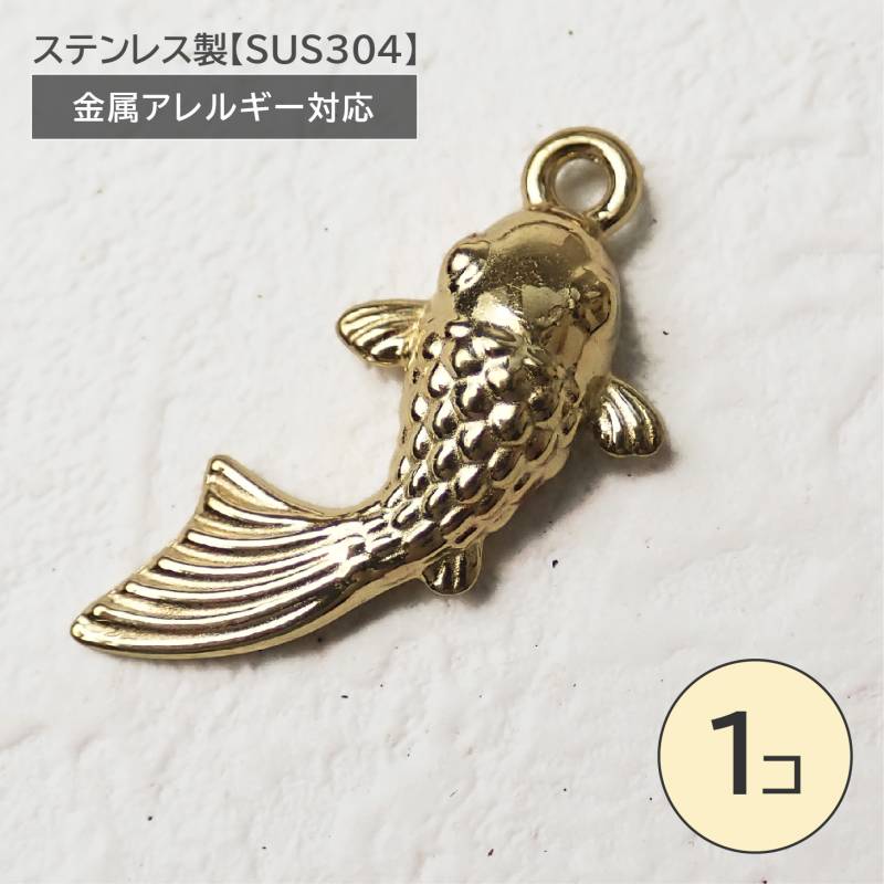 ステンレス製【SUS304】 金属アレルギー対応 ゴールド 魚 フィッシュ チャーム カン付き