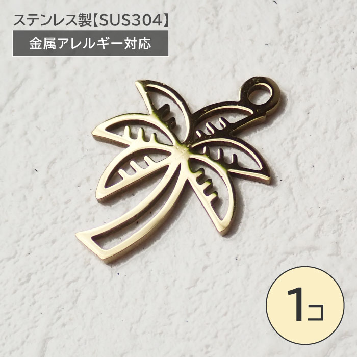 ステンレス製【SUS304】 金属アレルギー対応 ゴールド ヤシの木 チャーム 穴あき カン付き 海 夏
