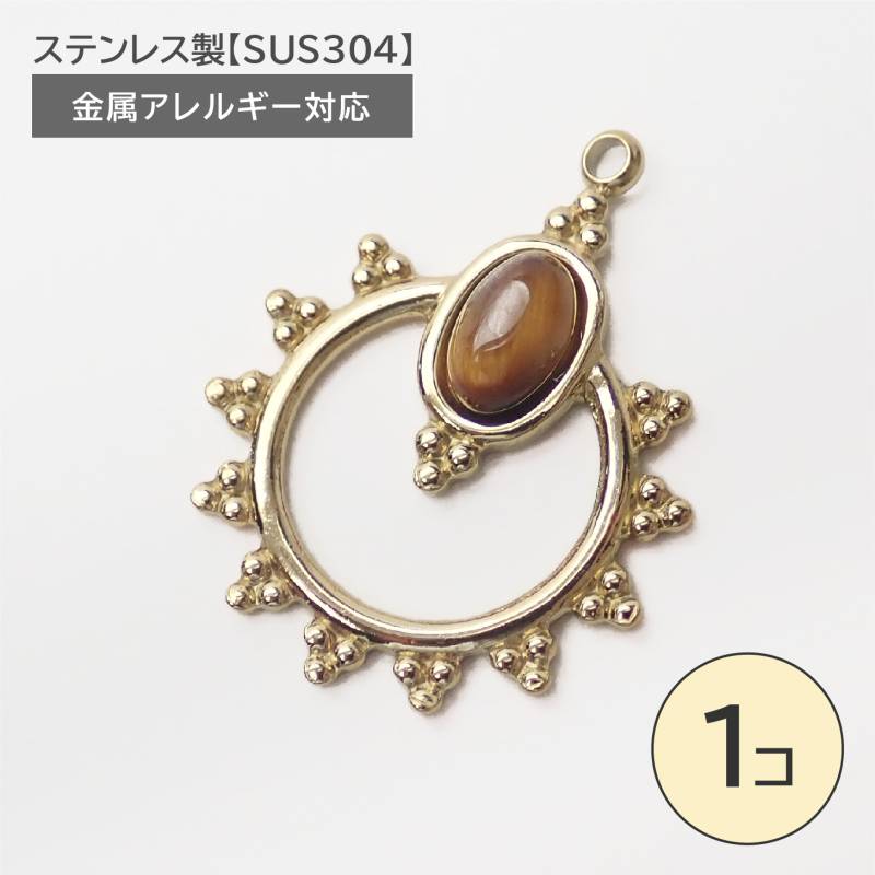 ステンレス製【SUS304】 金属アレルギー対応 タイガーアイ チャーム ゴールド レトロ 放射型 カン付き