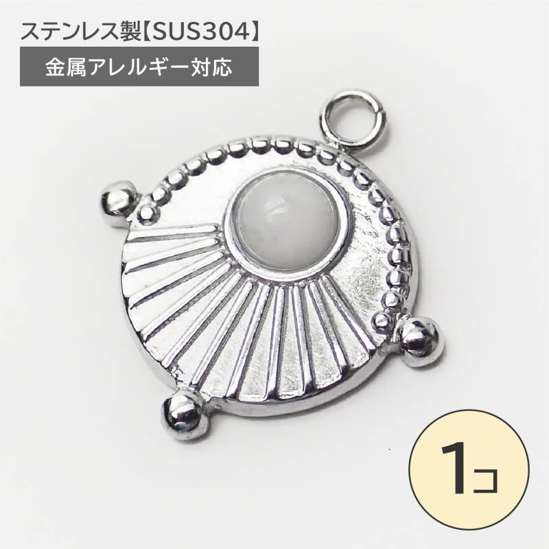 ステンレス製【SUS304】 金属アレルギー対応 人工石 チャーム シルバー 放射型 パーツ カン付き