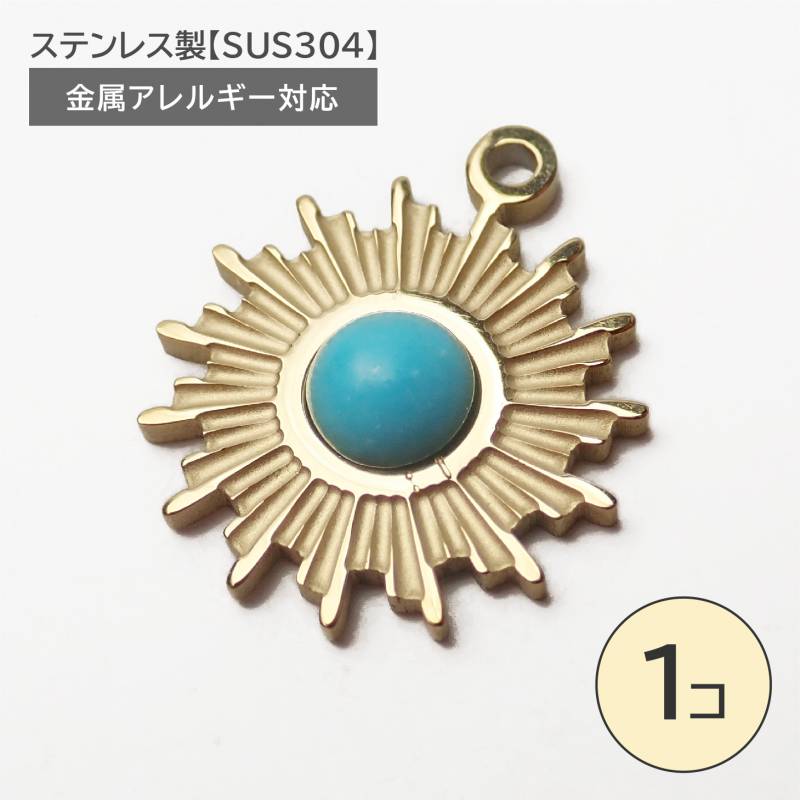 ステンレス製【SUS304】 金属アレルギー対応 ターコイズ チャーム ゴールド 太陽 パーツ カン付き