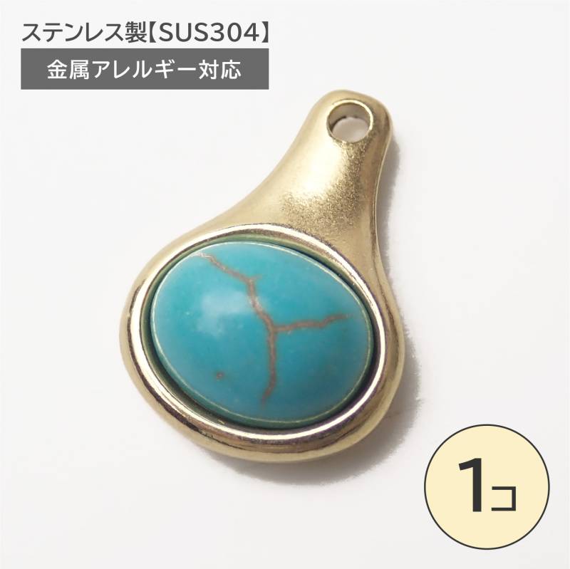 ステンレス製【SUS304】 金属アレルギー対応 ターコイズ チャーム ゴールド しずく型 天然風 パーツ 穴あり