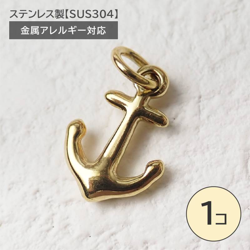 ステンレス製【SUS304】 金属アレルギー対応 アンカー 錨 チャーム ゴールド 海 パーツ 丸カン付き