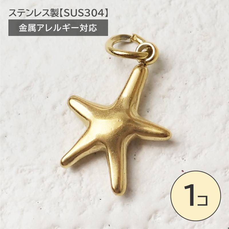 ステンレス製【SUS304】 金属アレルギー対応 ヒトデ チャーム ゴールド 海 ハンドメイド パーツ 丸カン付き